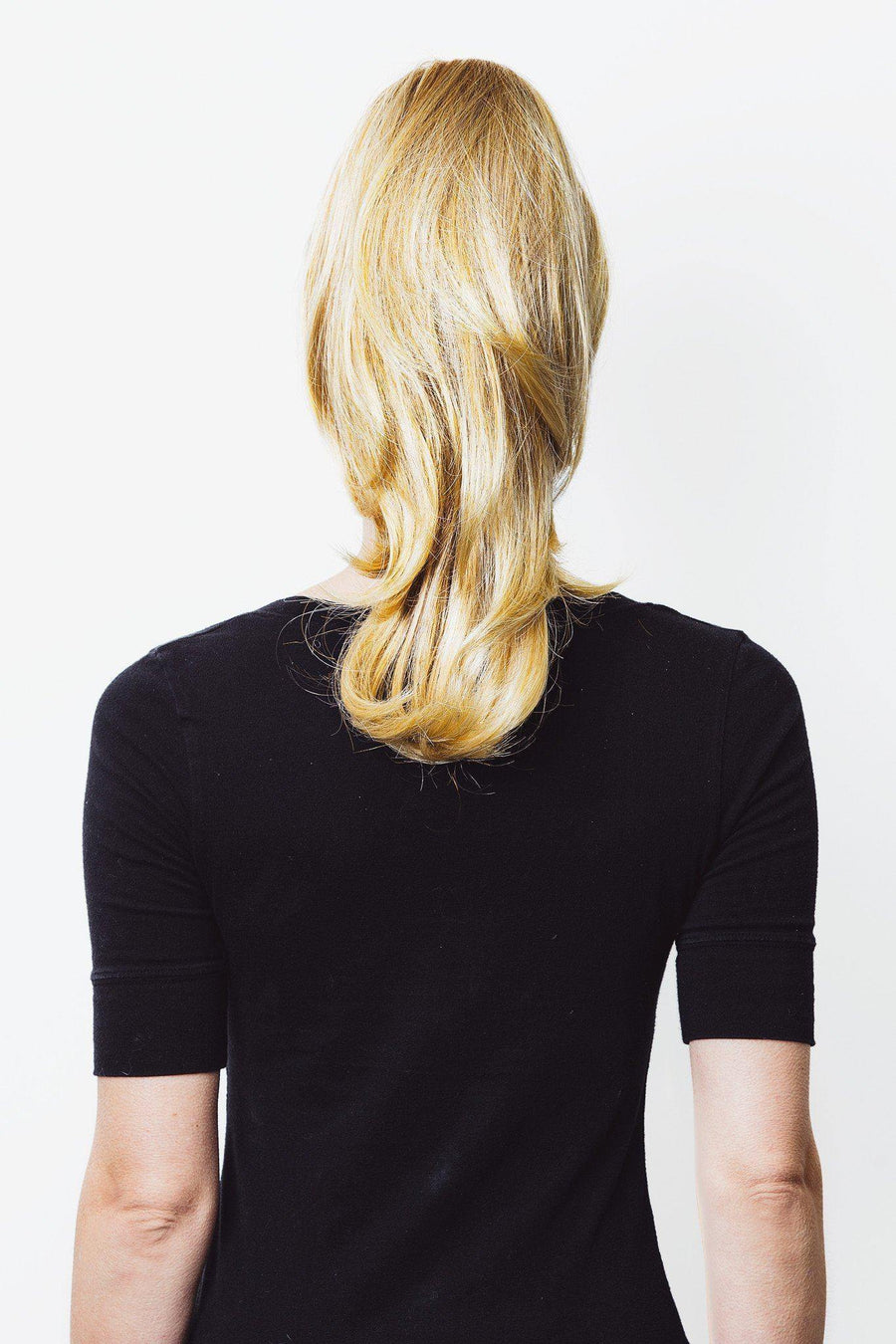 Meet Susan - our medium length clip-in ponytail extension. This piece can be worn in two different ways: as a long, layered look or a shorter ponytail by flipping the jaw clip over.