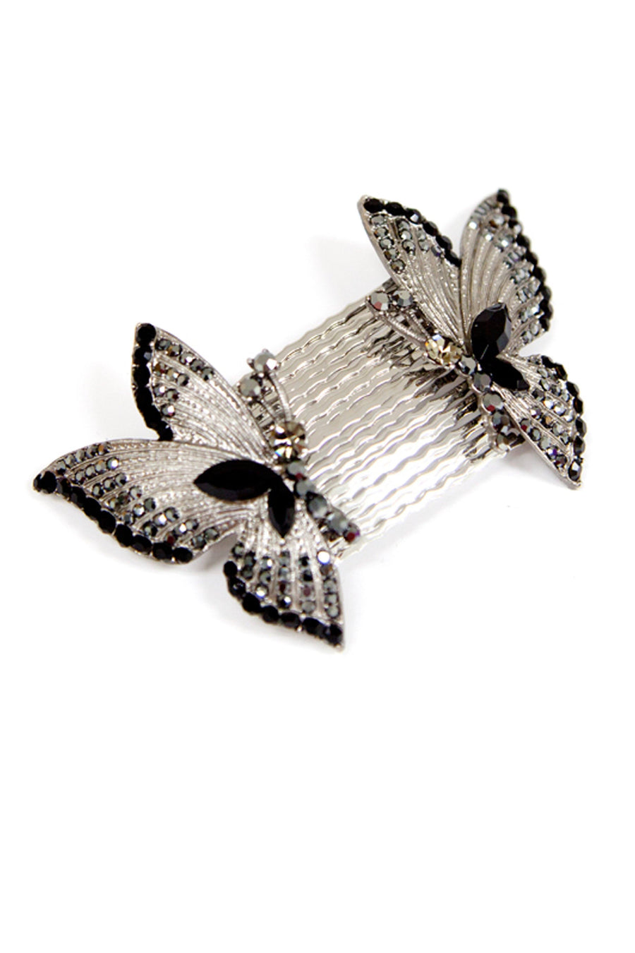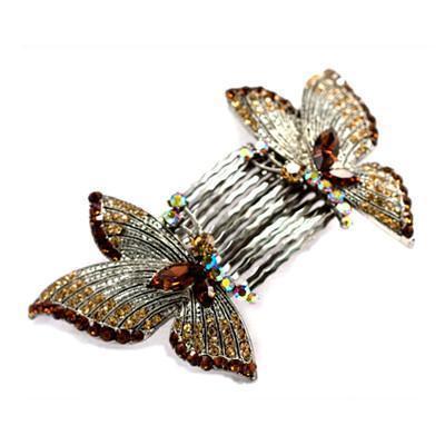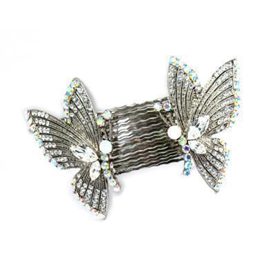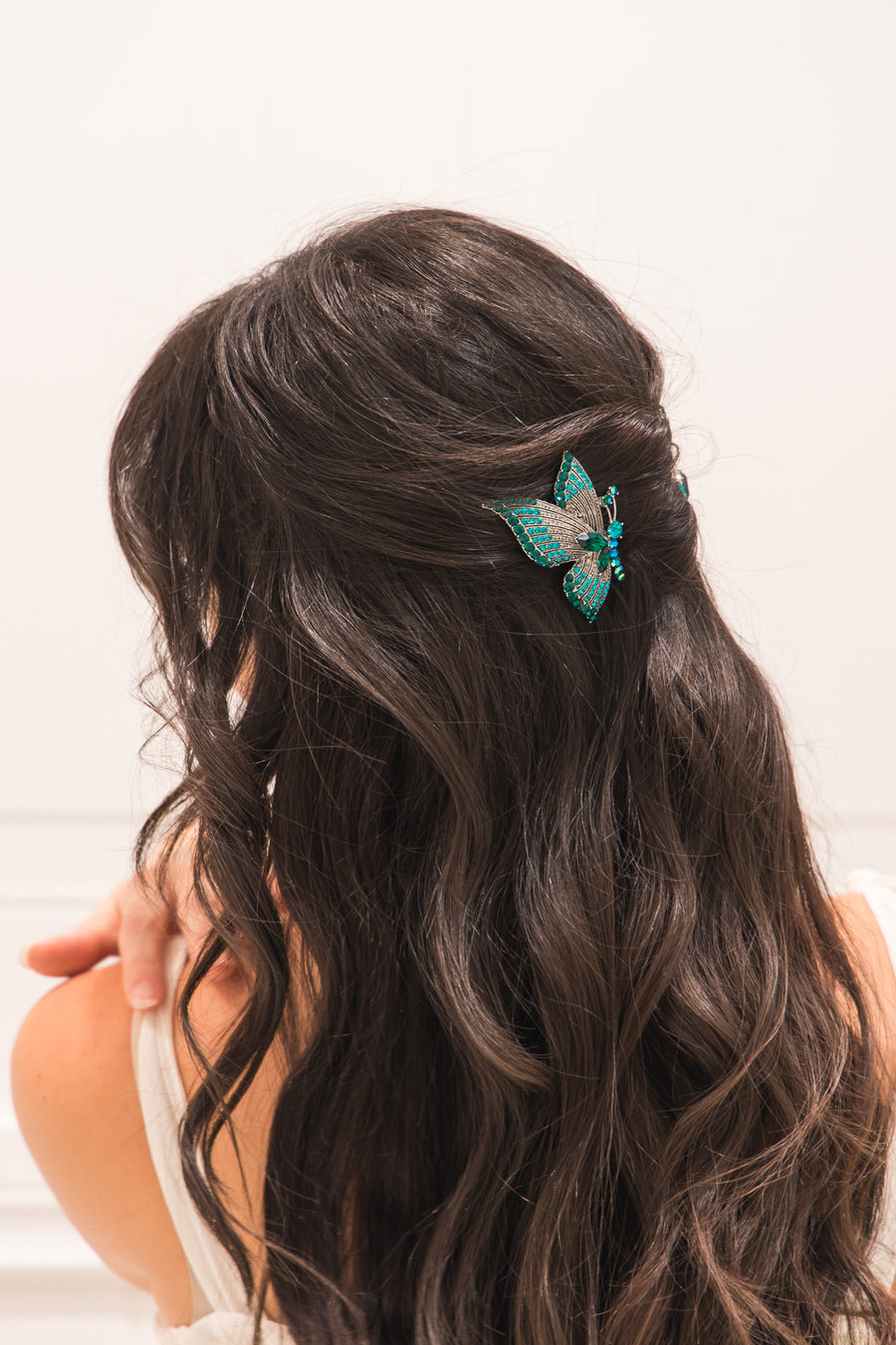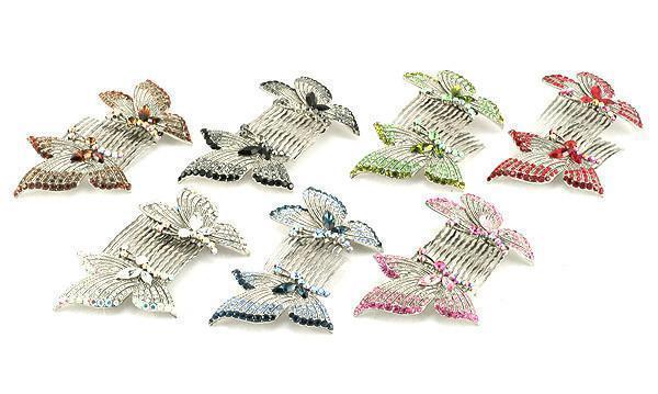 These elegant crystal hair combs lock together creating secure hold for any hair type! Once secured the combs form a unified butterfly look. This is perfect for a half-up hairstyle or around a ponytail!