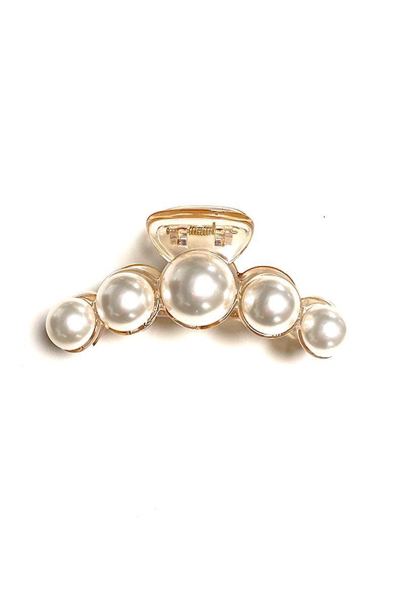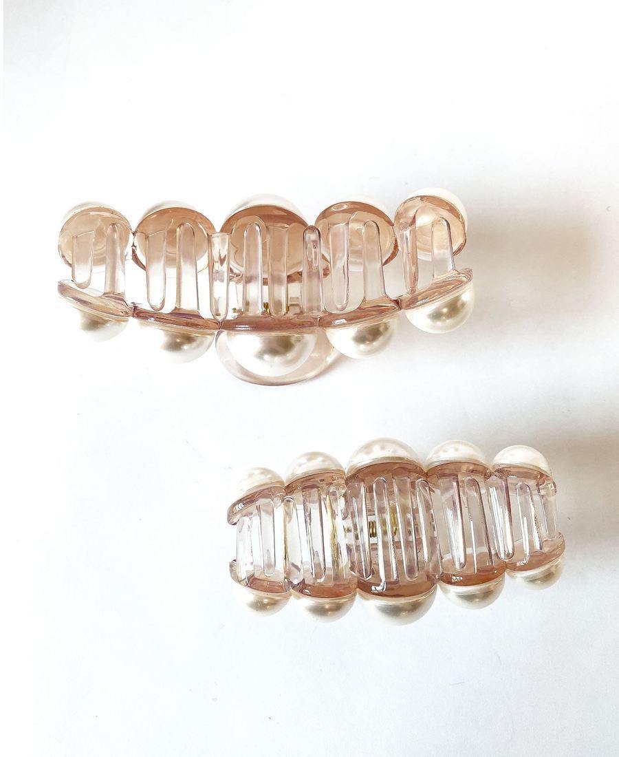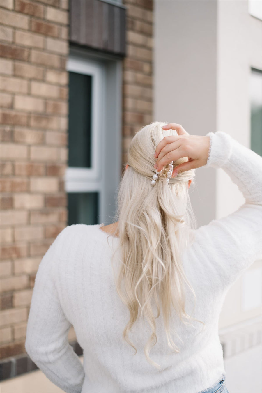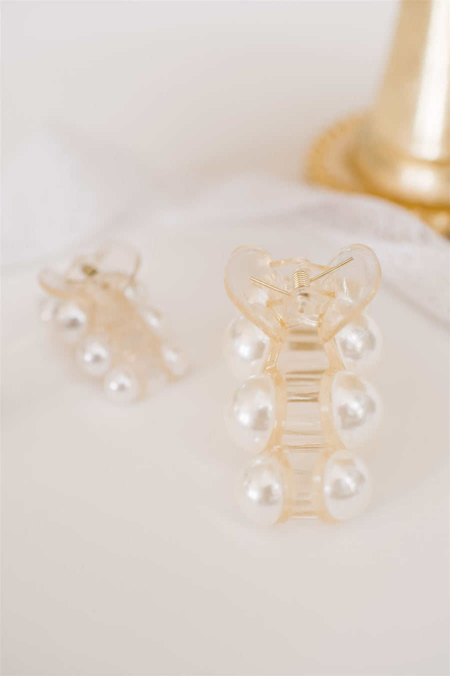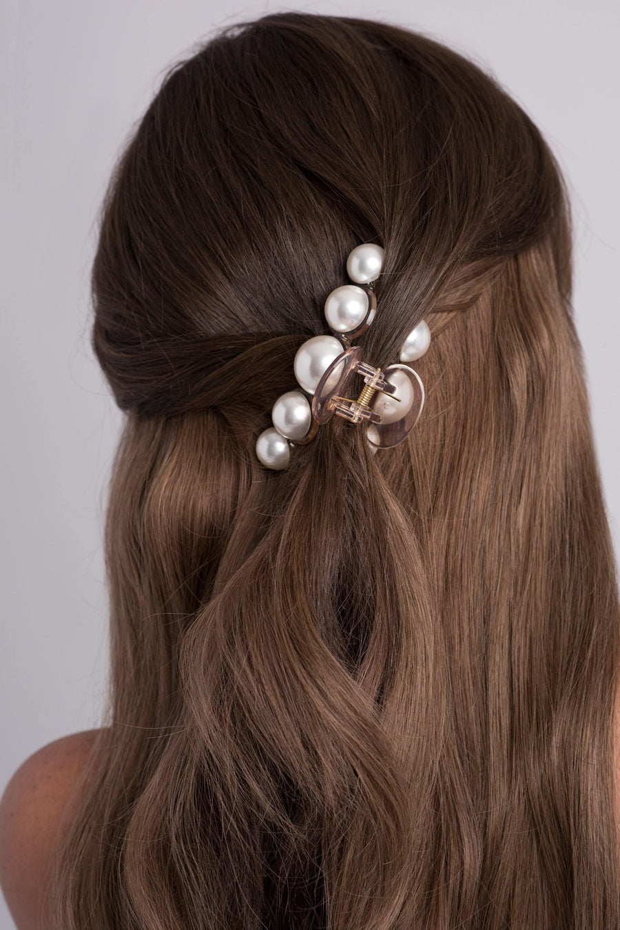 Elegant pearl claw clip perfect for clipping back a half-up-half-down look or messy bun. Comes as a two-piece set with two sizes included, the larger size is shown on model.